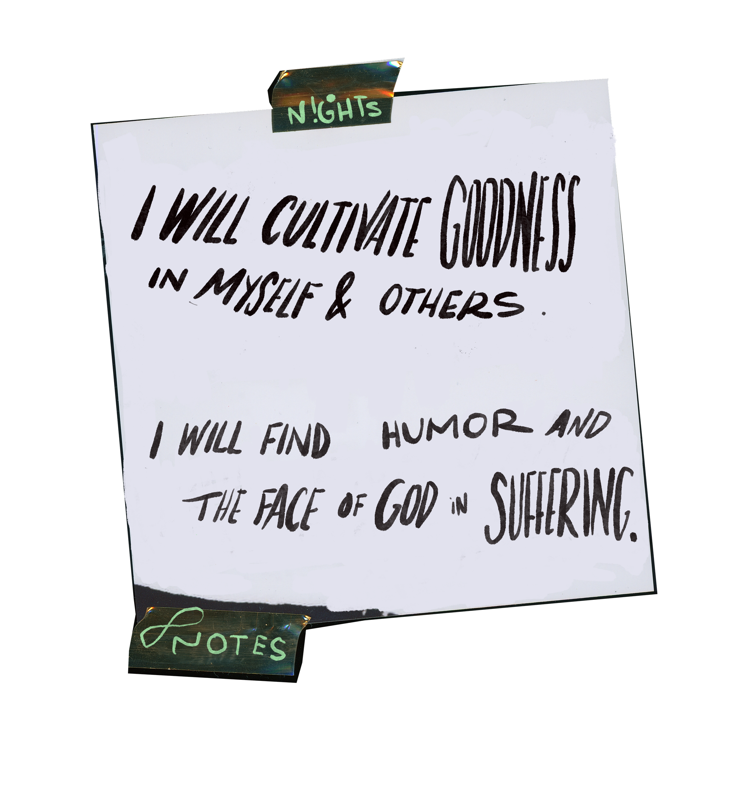 I say it to myself again: I will cultivate goodness in myself and others. I will find humor and the face of God in suffering.